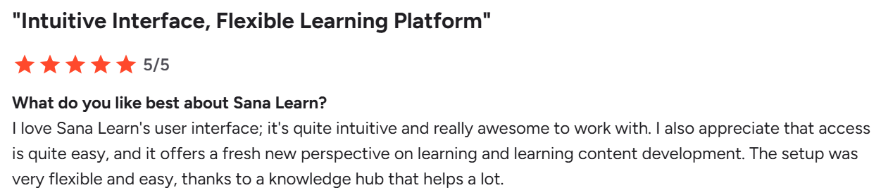 | Sana Labs | Enterprises adopting AI-native learning platforms | AI course generation, adaptive learning, knowledge discovery, analytics | 4.8 / 5 | Custom enterprise pricing |